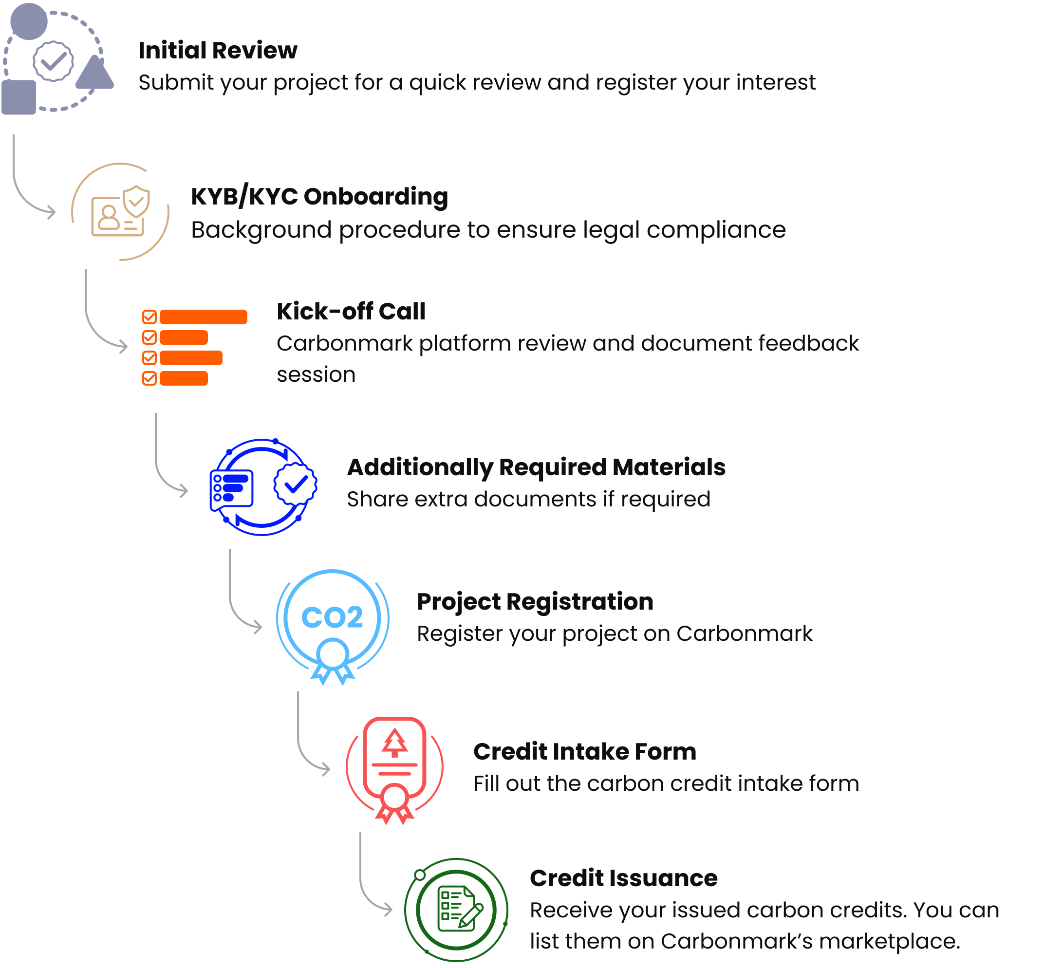 The first step to joining Carbonmark as a project developer issuing credits natively within our system is to complete and submit our [Carbonmark Direct Onboarding](https://share-eu1.hsforms.com/1eaZal2LjRdCkeaWaAQ1R7wfhhlr) form to register your interest.